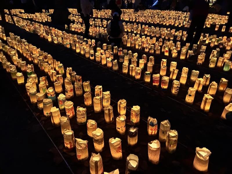 当日の活動は、竹灯篭の中から前日のろうそくを取り出し、新しいろうそくを入れる作業を行いました。日が暮れる前に、参加者全員でろうそくに火を灯しました。灯し終わった頃にはすっかり暗くなっており、一面に広がる灯篭の光が幻想的でした。社員同士の交流の場としても有意義な時間となりました。